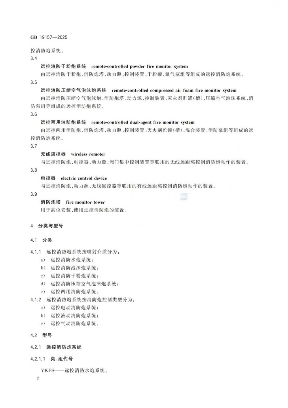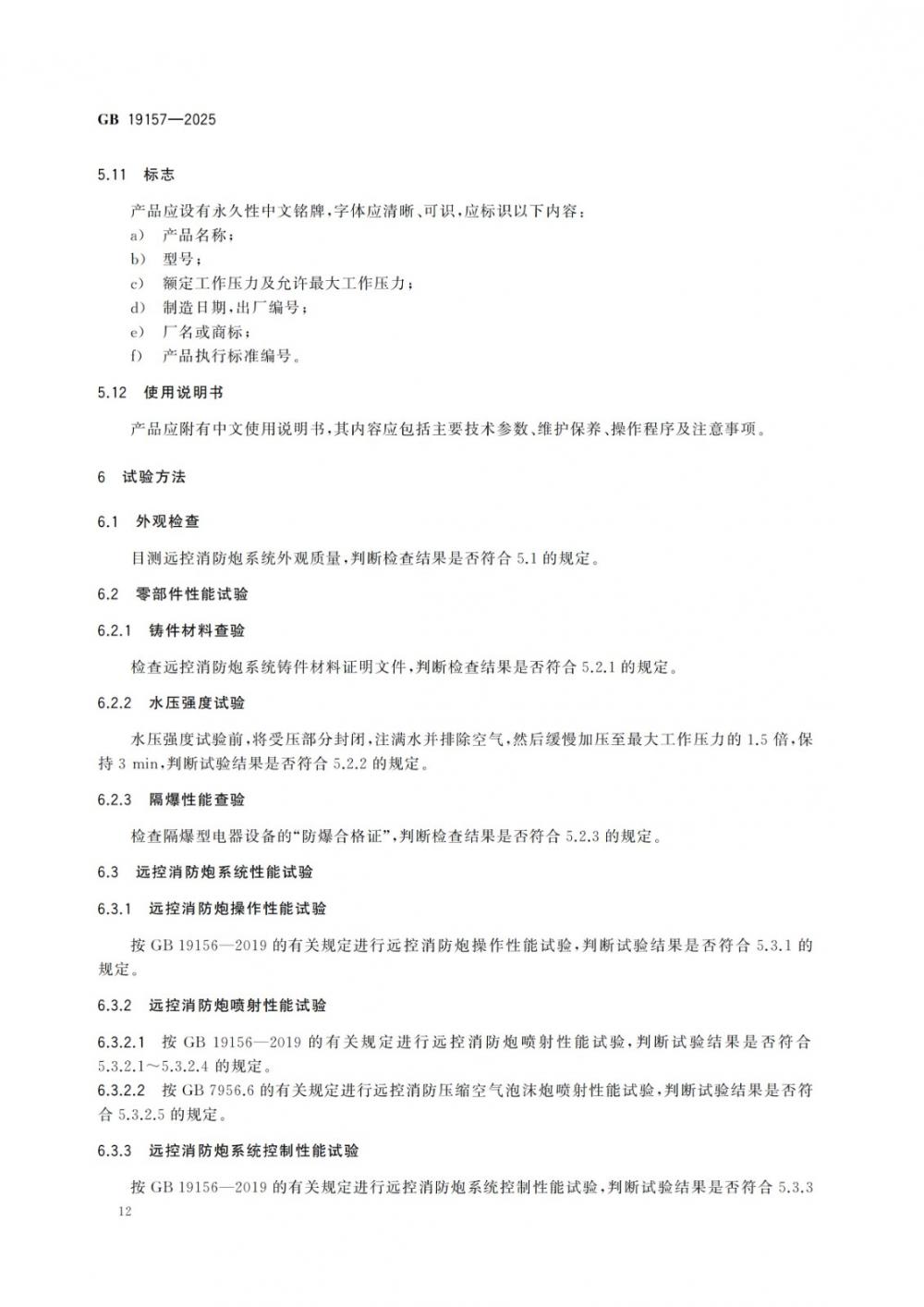 GB 19157-2025 《遠(yuǎn)控消防炮系統(tǒng)通用技術(shù)條件》免費(fèi)